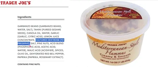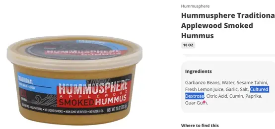 sold as a liquid or powder; labeled on ingredient lists as “cultured dextrose” or occasionally “fermented dextrose.”